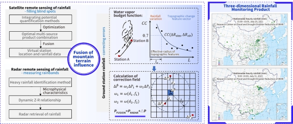 · Developing a multi-source rainfall fusion method incorporating satellite, radar and ground station data, with consideration of the localized characteristics of rainfall.