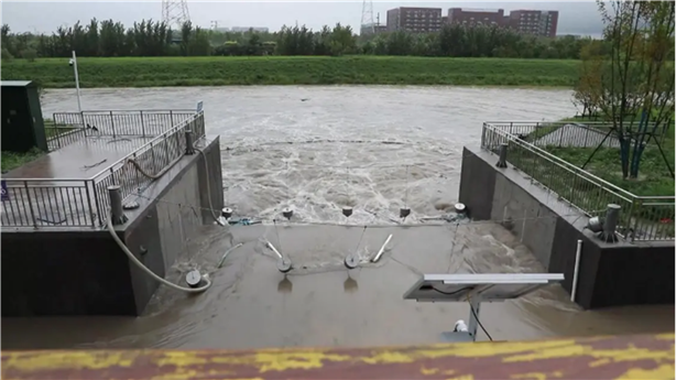 Floodwater being discharged in Xiong'an, Hebei Province [Photo / VCG]