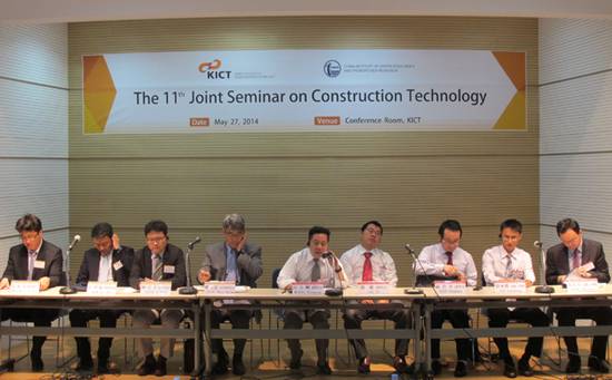 The 11th IWHR-KICT Joint Seminar, a bilateral annual academic event between IWHR and Korea Institute of Construction Technology (KICT), kicked off on May 27, 2014 at KICT's headquarters in Goyang, Korea. IWHR Vice President Dr. Wang Xiaogang headed a delegation to the Korean institute and was warmly received by KICT President Dr. Woo Hyo-seop.