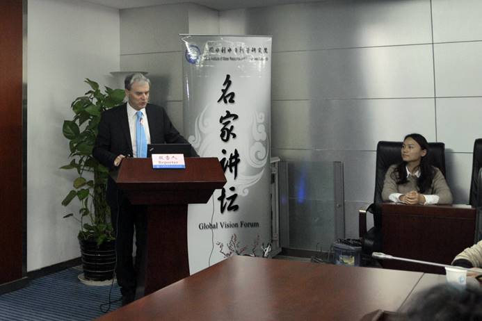 After the meeting, Prof. Goodwin gave a report at IWHR's Global Vision Forum on the challenges for water resources in the most populous state of the US. He introduced the water challenges now facing the drought-stricken California, the action plan to promote water management and innovative solutions, and the research activities as well as achievements in the related areas.
