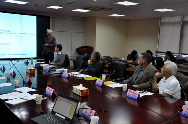 Prof. Liu warmly welcomed the delegation and thanked them for making this visit possible in a very short notice and tight schedule. He briefed the delegation upon the main work and achievement of IWHR in mountain torrents disaster prevention over the past few years and the cooperation and exchanges with the Swiss counterparts. IWHR hopes to further communicate with the Swiss experts on the advanced philosophy and technologies of mountain torrents prevention and to widen and deepen the bilateral cooperation in the relevant fields.