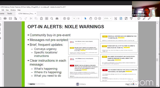 Dr. Carol Freeman delved into the details of evacuation in flood including the experience for the warning and protection of the communities.