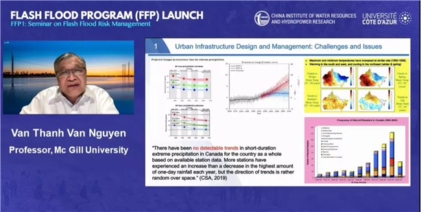 Prof. Van Thanh Van Nguyen from Mc Gill University introduced the characteristics of flash floods in Canada, linking climate change to Impact and Adaptation Studies in urban areas’ recent advances and shortcomings in modeling of extreme rainfall processes.