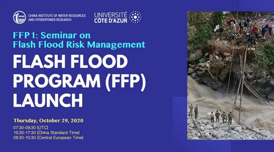 In recent decades, the flash flood has become one of the most destructive natural disasters, and its monitoring, early warning and prevention are gaining global attention. Based on this context, IWHR and Université C?te d’Azur (UCA) jointly initiated the Flash Flood Program (FFP), in a bid to establish a global partnership in flash flood research and provide theoretical and technical support for disaster preparedness and relief.