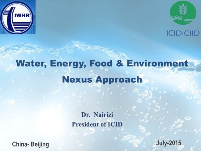 : July 15, 2015Lecturer: Saeed Nairizi (President, International Committee on Irrigation and Drainage)