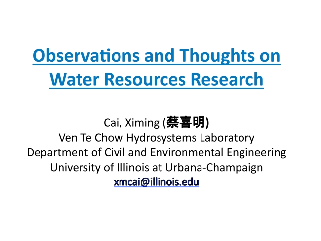 : January 13, 2017Lecturer: Cai Ximing (Ven Te Chow Hydrosystems Laboratory, Department of Civil and Environmental Engineering, University of Illinois at Urbana-Champaign)