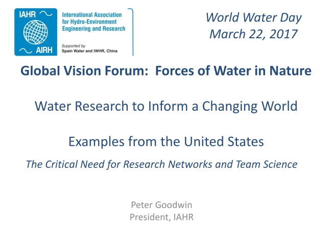 Peter Goodwin (IAHR President; Director, University of Maryland Center for Environmental Science)