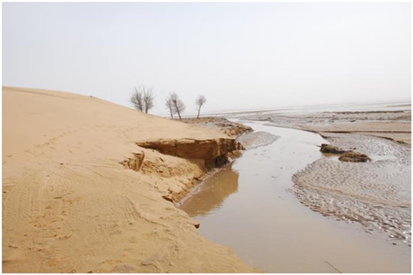 Flowing sand hills enter the Yellow River directly