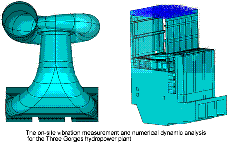 Practically measure on site the vibration of the hydroelectric generating sets and plant at different water levels, and carry out the large-scale finite element calculation and analysis through simulating complicated load conditions, then compare it with the practically measured results, so as to provide technical support to effectively control the plant vibration.