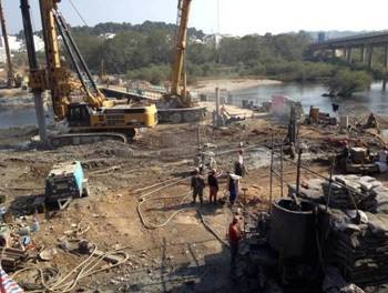 According to the construction plan, the grouting of the caps and part of the body of the three main piers need to be completed three months prior to the flood season, which requires the seepage control and water-stop engineering of the pier cofferdam to be safe and reliable and do not hold back the construction of rotary-dig drill pile. For seepage control, new type of cement paste combined with the treatment of stable slurry and Portland cement slurry grouting has been used. This seepage control plan is more adaptable to the local geological conditions and could satisfy the demand of simultaneous construction of cofferdam water-stop and pile foundation.